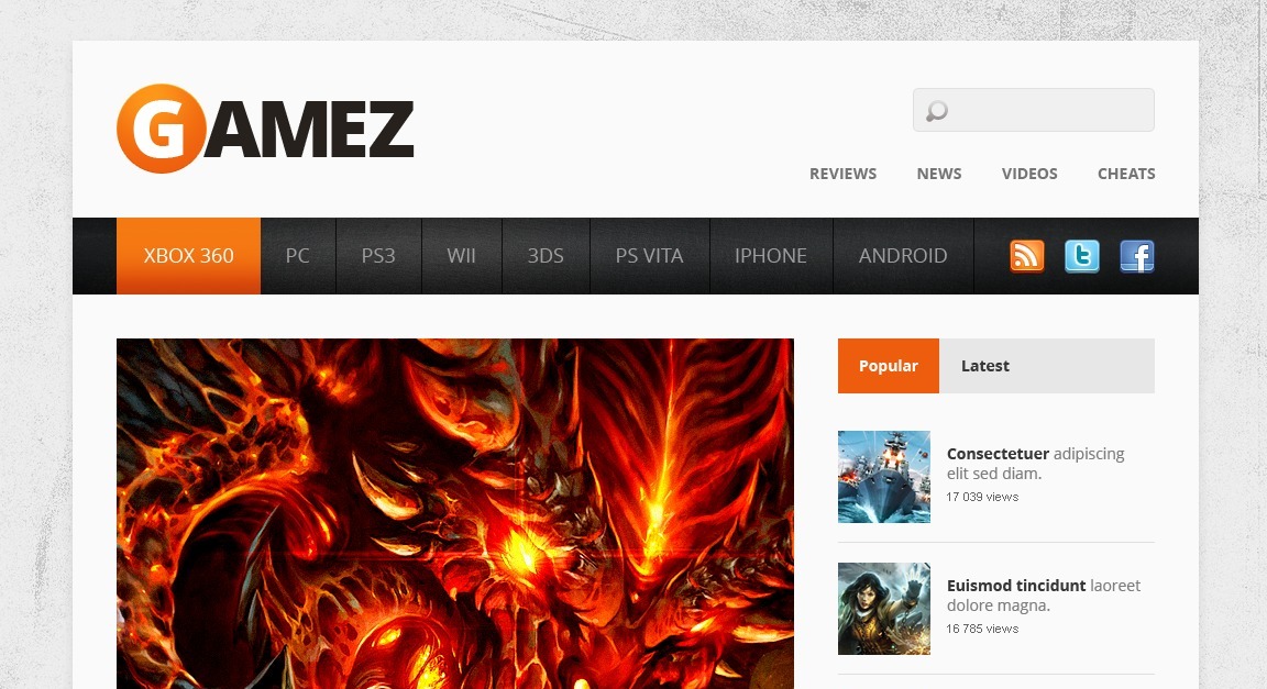 使用此游戏门户网站网页模板和具有视觉吸引力的调色板来微调您的网站设计。一个好的游戏门户、网页游戏或 Flash 游戏网页必须使客户的冲浪变得非常简单 - 这就是此设计真正要做的。此外,这种布局通过各种按钮和小部件与最流行的社交媒体网络互连。注重视觉效果的赏心悦目设计很容易吸引客户的注意力,吸引他们。如果此网站布局有任何问题,您可以与熟练的技术支持经理之一沟通,他们将解决任何问题给顾客带来困难。需要更多迹象表明此网页布局是 Flash 游戏或游戏门户在线资源的最佳选择吗?看看它的现场演示,就可以抛开所有顾虑。