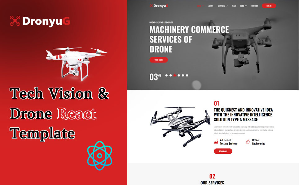 “Dronyug” 是一个网站模板,旨在展示和推广无人机及相关服务。它使用 React 构建,React 是一个流行的 JavaScript 库,用于构建用户界面,使其动态且响应迅速。以下是 Dronyug 模板中常见的一些主要功能和组件: