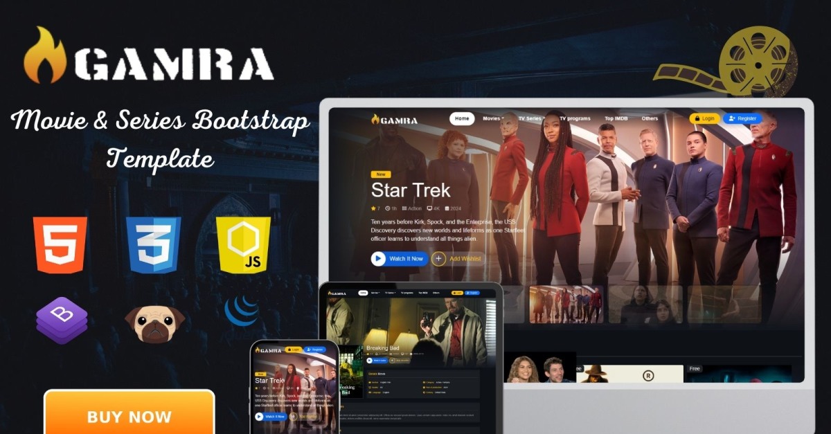 Gammra 电影和电视剧观看模板是创建展示最新电影和电视节目的卓越且有吸引力的网站的完美解决方案。如果您正在寻找一种能为网站访问者提供卓越观看体验的设计,那么 Gammra 模板是理想的选择。此模板基于著名的 Bootstrap 框架,确保与所有现代设备和浏览器兼容。它是使用 HTML 构建的,依赖于 pugJS 库,使开发过程更加顺畅和高效。