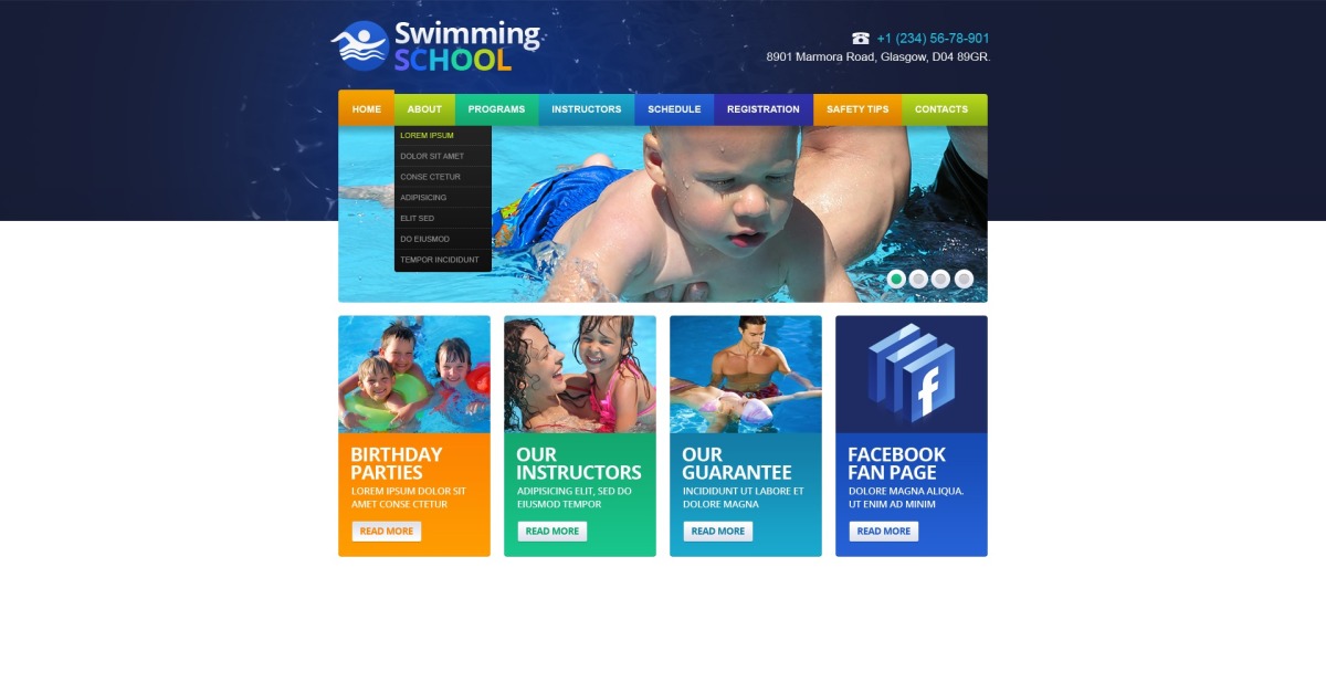 这个游泳网站模板是响应式的