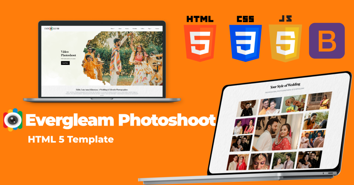 使用 Evergleam 专业且时尚的 HTML 模板来改变您的婚礼摄影业务。