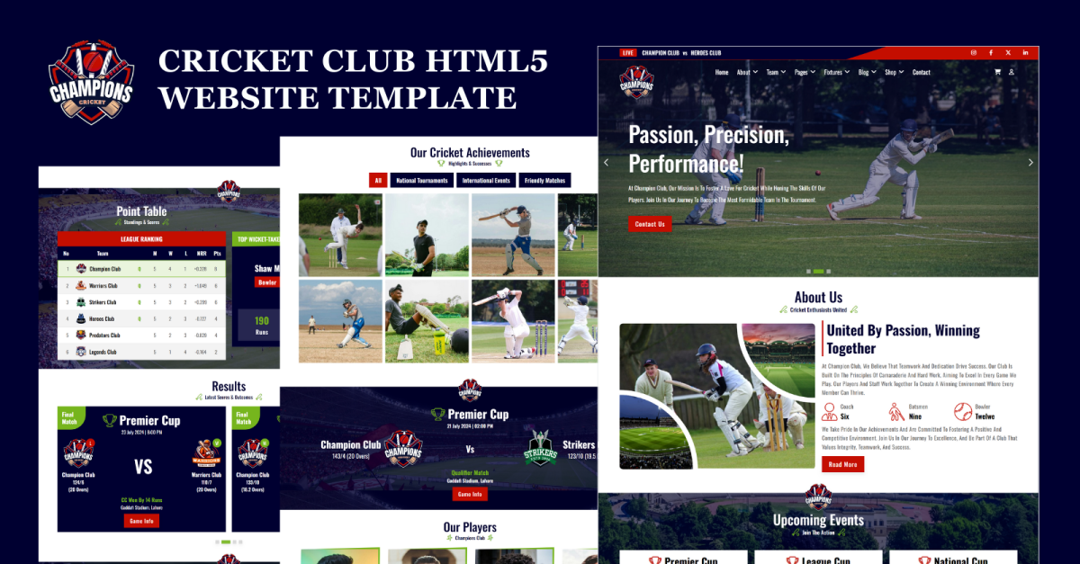 Champion 是一个开创性的、精致的 HTML5 网站模板,专为板球和体育俱乐部精心打造,提供体育界的非凡体验。利用HTML5、CSS3和JavaScript等先进技术,Champion 为体育组织的数字表现树立了新的标杆。Champion 专为板球俱乐部、板球学院和运动队设计,以其独特的功能改变了在线格局,旨在彻底改变体育俱乐部与社区互动的方式。