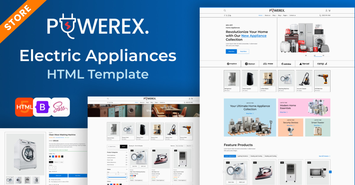 PowerEx - 多用途配件商店 HTML 网站模板是一款先进且功能强大的 HTML 模板,旨在为您的在线商店提供时尚现代的外观。PowerEx 模板非常适合技术零售商、小工具商店或各种配件供应商,具有专业且用户友好的界面,可确保为客户提供无缝的购物体验。凭借直观的导航、结构良好的内容区域和高质量的设计元素,此模板提供了您启动和管理成功的电子商务商店所需的一切。PowerEx SEO 友好型 HTML 模板拥有众多可自定义的功能,可让您有效地突出您的产品,同时保持一致且有吸引力的品牌形象。从引人入胜的博客内容到易于导航的商店,此模板旨在推动用户参与和销售。
