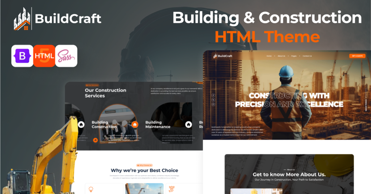 响应式设计: Built Craft 响应式构造模板可完美适应任何屏幕尺寸,确保在移动设备、平板电脑和台式机上获得无缝体验。