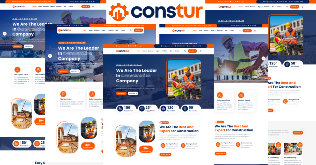 Constur 是一款出色且完美的 HTML5 模板。Constur 非常适合建筑、建筑商、承包商、建筑、建筑、工业、维护、翻新、维修、屋顶承包商和相关站点。美观、简单、干净的设计将完全满足您的需求。Constur 始终具有注释良好的代码,纯设计模板将回答您可能遇到的任何问题。Constur 的简单设计对任何建筑工地都很有利,并且该模板提供了大量令人惊叹的功能。享受令人惊叹的自定义可能性以及适用于您网站的大量预先存在的功能、组件和设置。使用我们的 Constur 创建一个精美、视觉上吸引人的网站,有效地展示您的业务。