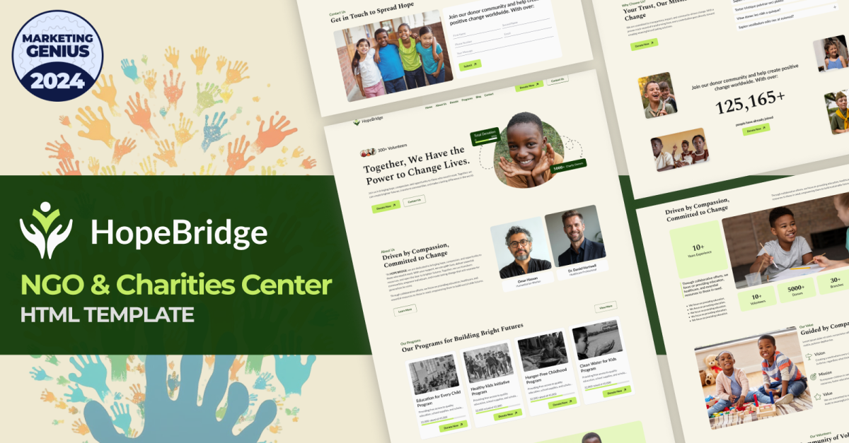 Hope Bridge - NGO 慈善和筹款 HTML 模板是一款功能强大且经过精心设计的解决方案,适用于非营利组织、慈善机构和筹款活动。此 NGO HTML 模板专为满足那些努力改变世界的组织的特定需求而量身定制。凭借其简洁、专业的设计和用户友好的界面,Hope Bridge 提供了一个完美的平台来展示您的使命、开展活动并激励人们为您的事业做出贡献。