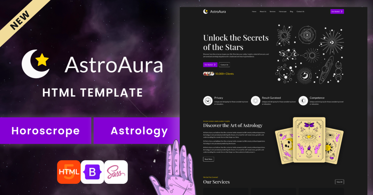 AstroAura - 占星术和星座运势响应式 HTML 5 模板