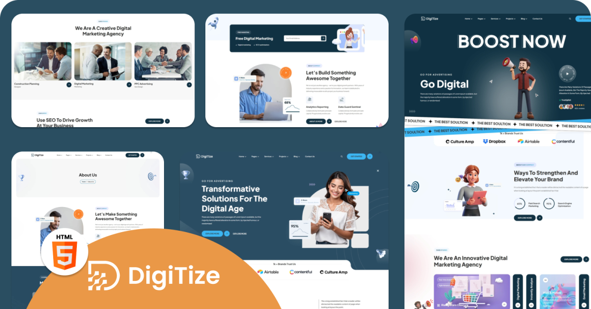 DigiTize 是一款专业的响应式 HTML 模板,专为数字营销机构、SEO 公司、创意工作室和在线品牌顾问设计。它基于 Bootstrap 5、HTML5 和 CSS3 构建,提供结构良好的服务、案例研究、团队简介、价格表、客户评价和联系表单等版块。其简洁的代码、SEO 优化的结构和移动端友好的布局,使其成为希望提升在线知名度并通过潜在客户开发和专业展示吸引新客户的机构的理想之选。DigiTize 易于定制,并兼容各种现代浏览器,可帮助企业展示专业知识、建立信任并扩大客户群。适用于初创企业、自由职业者和成熟的营销公司。