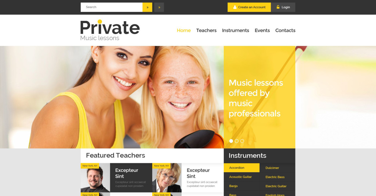 经验丰富的音乐教育者通常会建立自己的学校,因为这一举措让他们在新手音乐家社区中更加引人注目。如果您的目标是这样的事业,那么这个生动的主题将让您在网络上宣传您的企业。在它的帮助下设计的,您的资源将以其令人惊叹的图像和黄页元素相辅相成,吸引每个渴望接受音乐教育的人。此外,精心设计的主题结构将有助于浏览您的门户。内容按教师、乐器和活动进行分类,这样可以轻松找到必要的信息。由于模板的社交媒体集成,您将有机会在社交网络用户中宣传您的音乐课程。