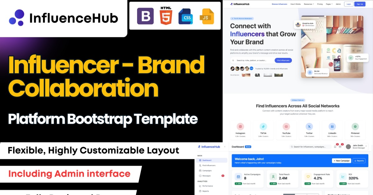 InfluenceHub - 影响者-品牌合作 Bootstrap Lite 及管理模板