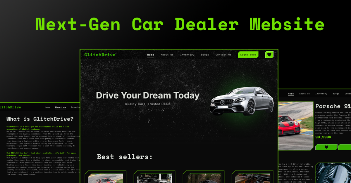 GlitchDrive 是一款新一代赛博朋克风格的汽车交易平台和经销商 HTML 模板,专为希望网站呈现现代感、活力四射且独具视觉特色的品牌而设计。它融合了大胆的故障艺术美学和简洁的 UI 结构,为汽车企业和开发者在创意设计和专业易用性之间实现了完美平衡。该模板的布局旨在突出未来感十足的车辆展示,提供流畅的动画、沉浸式的视觉效果和无缝的浏览体验,让用户从进入页面的那一刻起就沉浸其中。