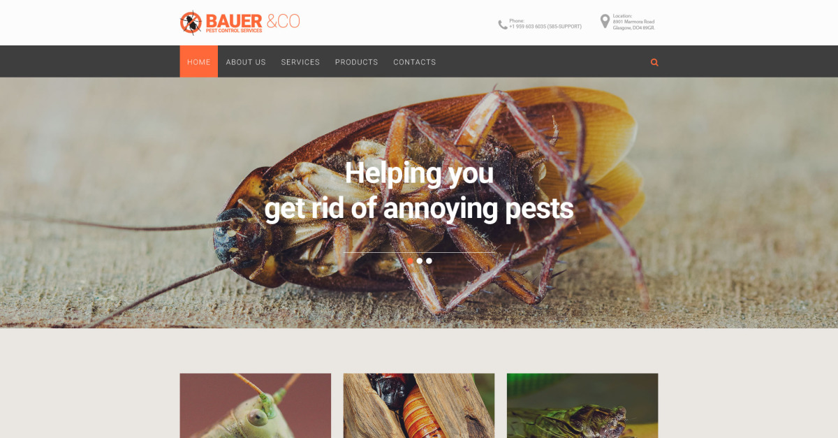 该昆虫控制服务网站网页模板将允许您启动或翻新当前网站以满足您的需求。如果您想要一个用于害虫防治服务或害虫检查服务的网站,那么此主题是制作全新网页或为您已有的网页提供全新外观的理想替代方案。该模板易于使用的导航和响应式设计为网页访客提供了愉快的消费体验。布局宽敞且易于浏览。整洁、有效的代码和全面的指南将帮助您按照您想要的方式更改该害虫防治公司网站主题。使用此设计模板可以扩大您的页面浏览量并在短期内获得更多收入。