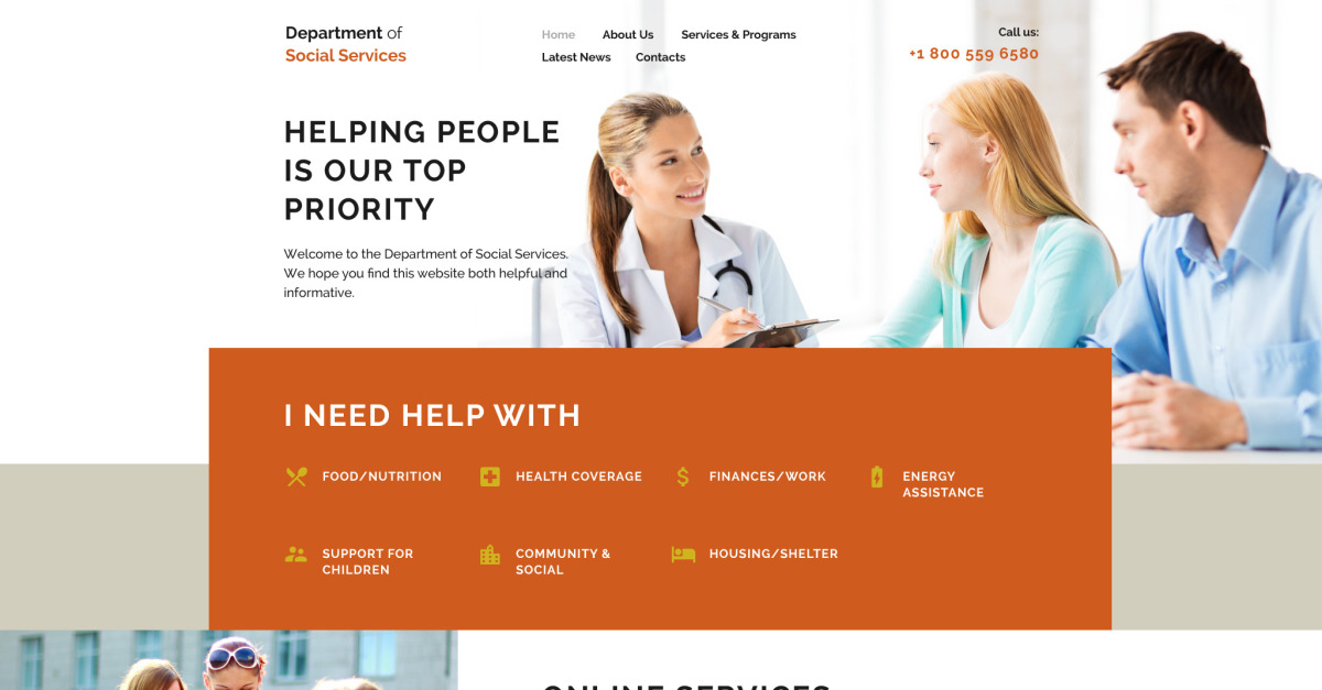 该医疗网站模板采用时尚地铁风格设计。然而,作者使用了更柔和的调色板,这与主题更相关。将信息分块排列可以极大地简化其感知。简单的几何形状在网站上创造了和谐和清晰的层次结构。社会工作者友善的微笑在网页访问者的心中激起了希望。我需要有关阻止大大简化网站访问者搜索的帮助。该网页包含有关公司服务、计划和家庭支持的信息。推荐提高了对企业及其服务的信任。它们呈现在滑块中。社交媒体图标、时事通讯订阅表格和附属链接位于模板的页脚。