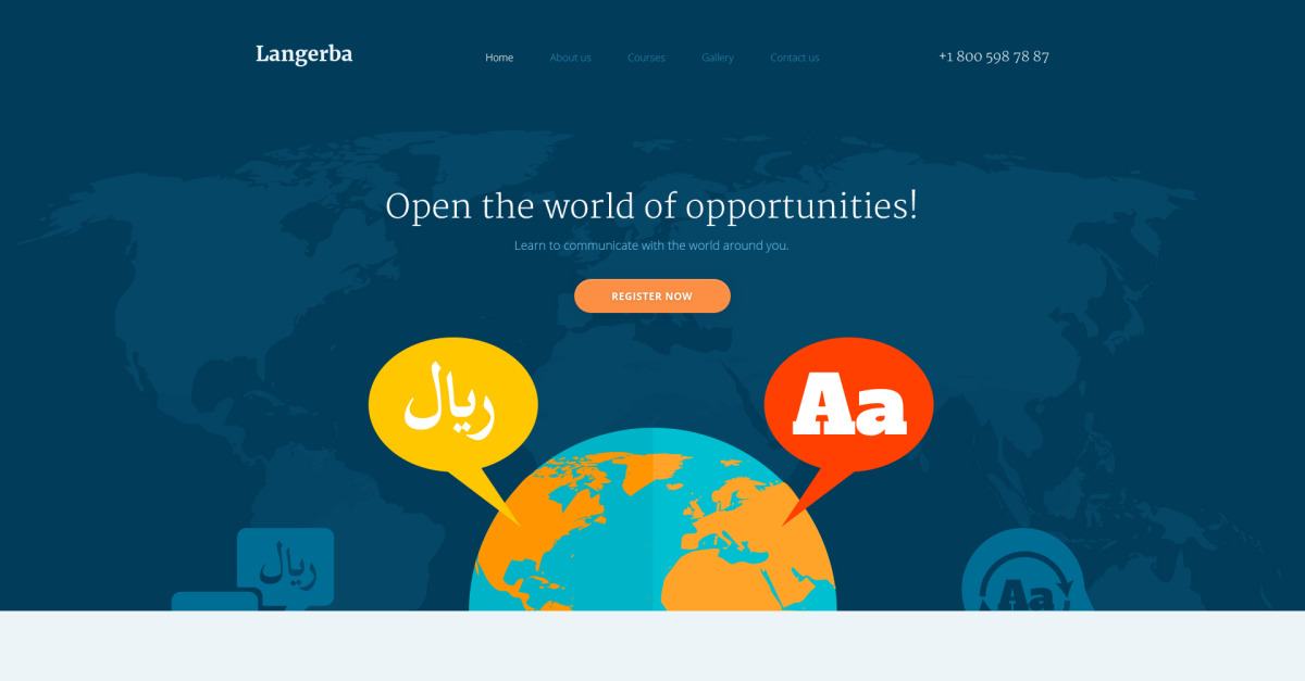 该主题是为语言教学中心开发的。由于其不常见的设计,该模板将使您的学校与许多其他学校区分开来。作者使用了Material风格的插图。它们吸引访客的注意力并激发他们的兴趣。号召性用语按钮具有圆角。开始学习外语的原因列表配有干净的粗略图标。用户可以直接在语言中心网站模板的主页上注册电子邮件课程。学生的感言显示在页面底部的滑块中。
