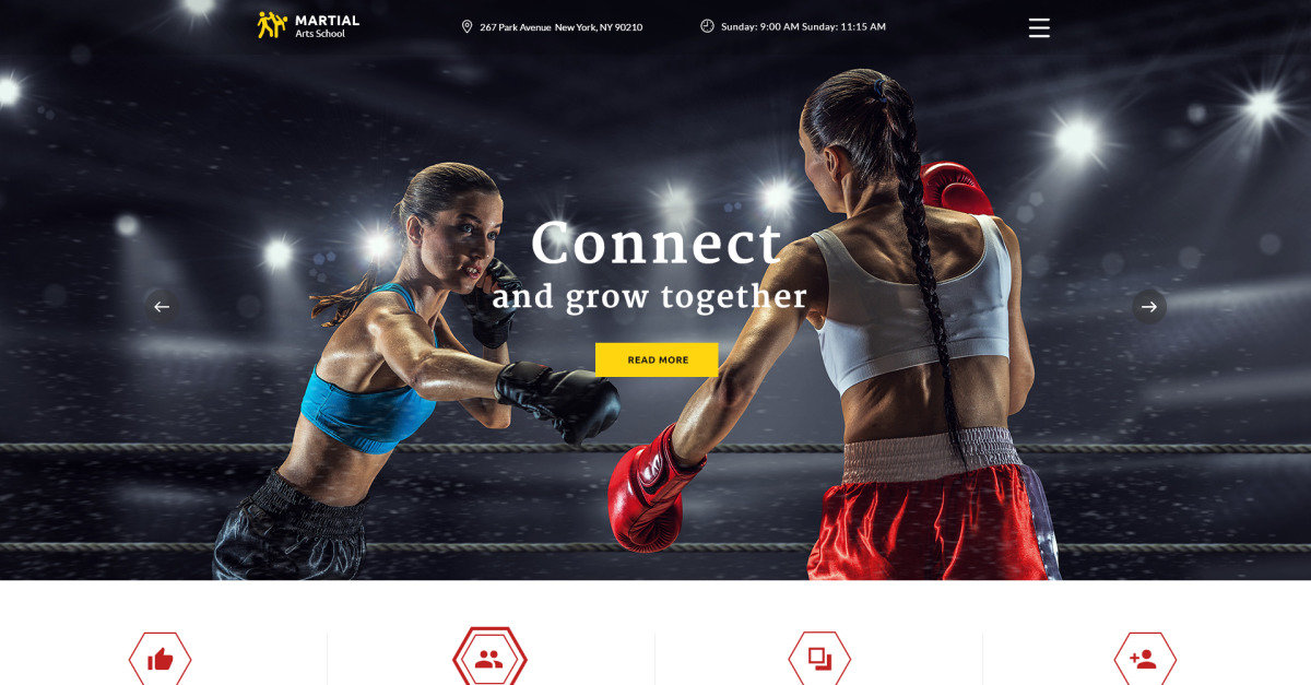 如果您想为您的武术学校建立一个迷人且具有专业外观的网站,那么这个 Bootstrap 多页武术网站模板就是您的目标。许多现成的 HTML 页面将有助于为您的访问者提供有关体校的所有详细信息,同时,广泛的 UI 元素将有助于通过多种类型的内容为您的网站增添趣味。置顶菜单隐藏在时尚的汉堡图标后面,因此,您的受众将享受舒适的网站导航。借助具有预加载团队成员模块的专业外观“关于”页面,以最佳方式展示您的空手道学校和武术专家,并使用结构良好的“活动”页面让您的访问者了解所有即将举行的活动。使用此 Bootstrap 多页武术网站模板在整个网络上宣传您的武术学校!