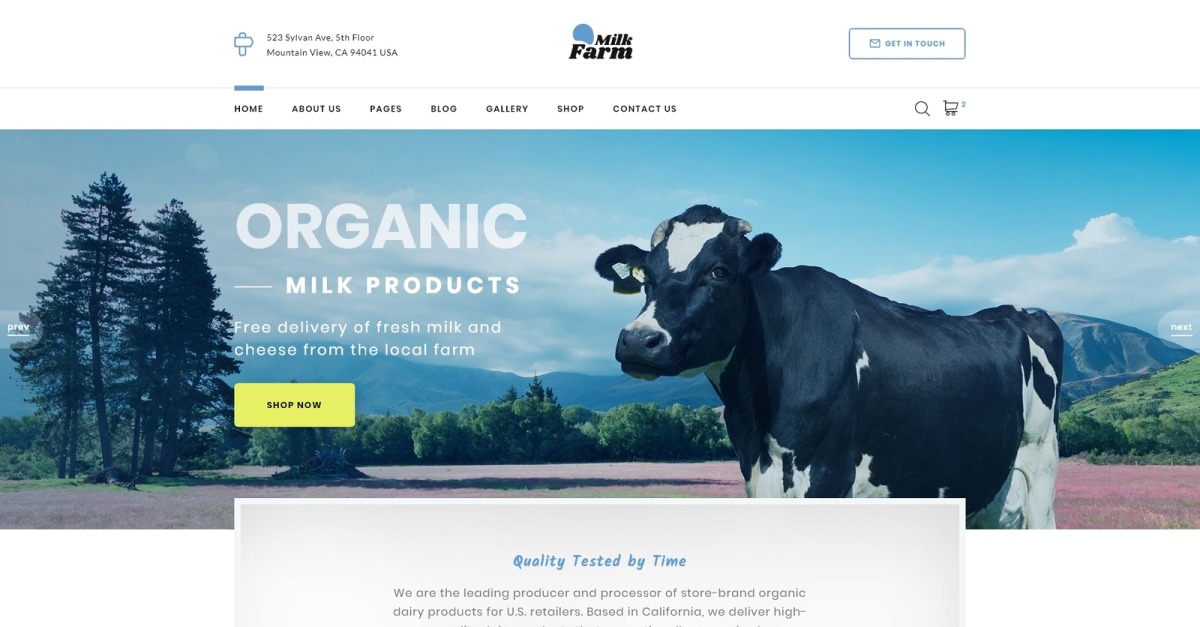 如果您需要提供有关您的农场的更多信息,此奶牛场模板具有令人印象深刻的预先设计的页面。您可以通过博客页面发布有关农场活动的最新消息和更新。借助图库,您的潜在客户可以查看您农场的照片。此外,您可以讲述您的农场的故事并描述您的团队。这是可能的,因为“关于我们”页面。