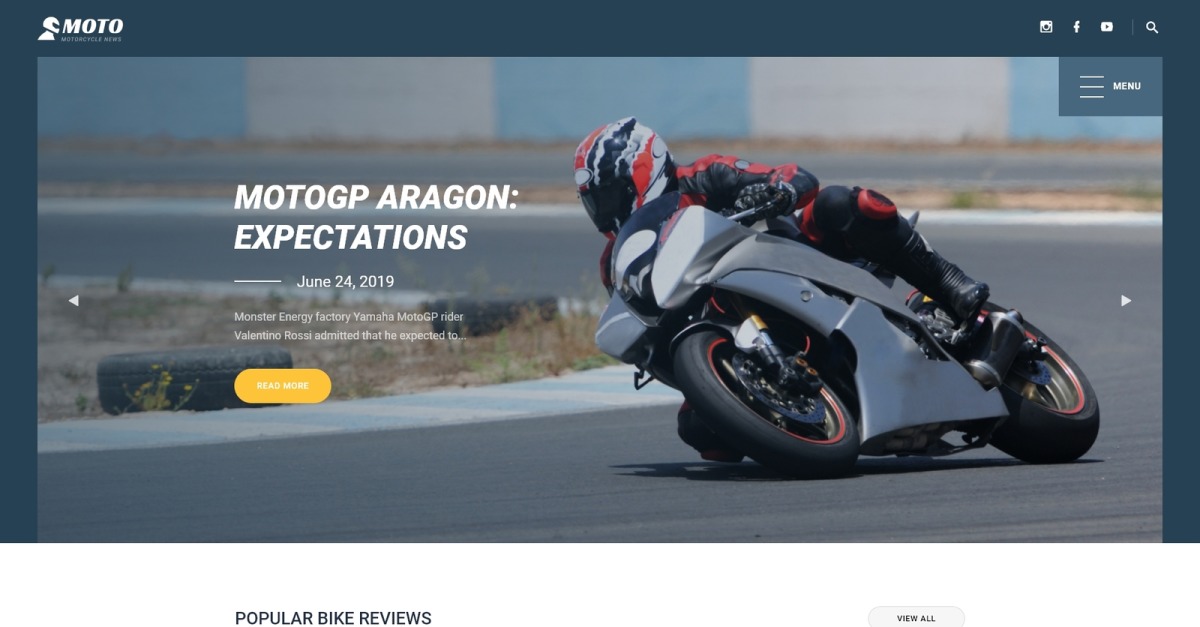 如果您经营摩托车新闻门户网站,我们可以专门为您的需求开发一些东西。我们的团队很高兴推出 MOTO 多页网站模板。有了它,您可以为读者提供有关摩托车的任何类型的信息。您可以撰写有关摩托车运动的文章或上传访问者认为有用的摩托车评论。