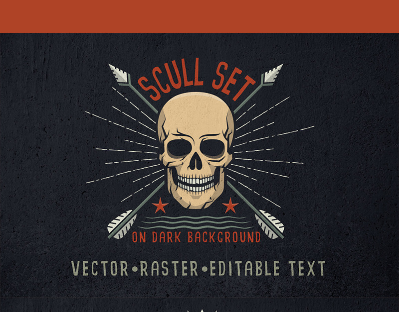 骷髅标志设置在黑暗-光栅插图