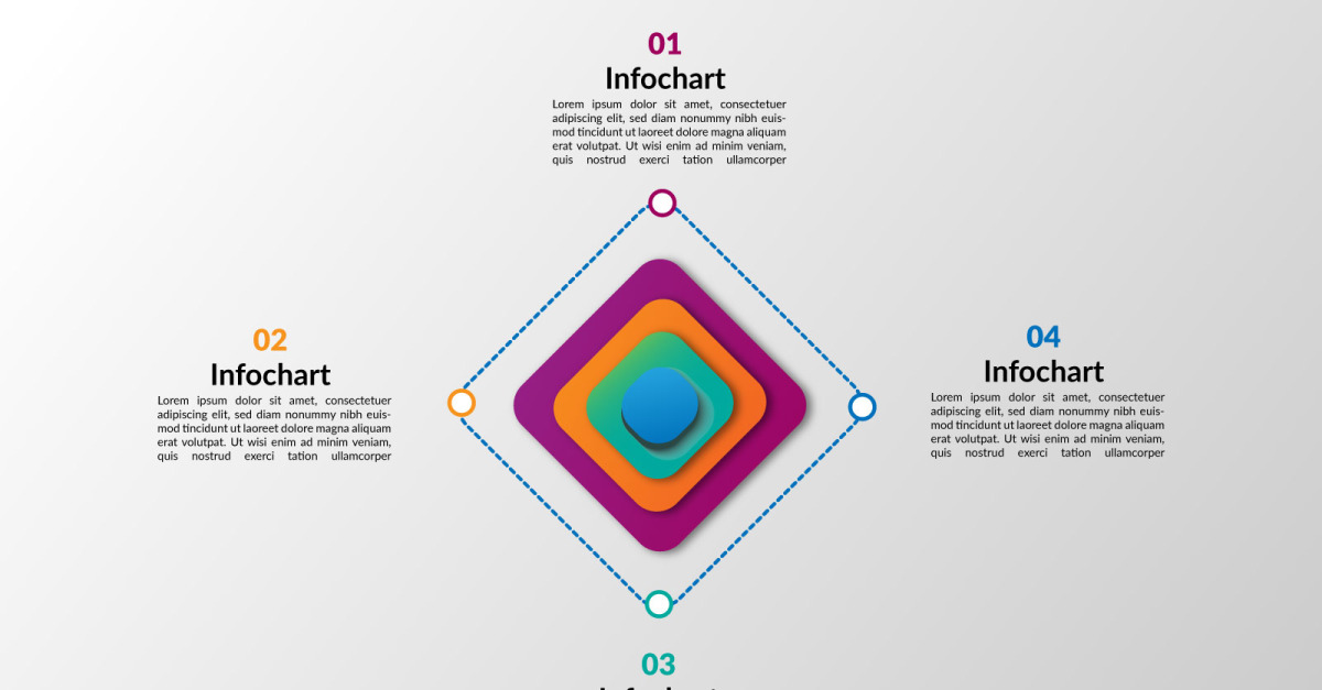 矢量图信息图表设计模板与 4 个选项或步骤。可用于流程、演示文稿、布局、横幅、信息图流程图、