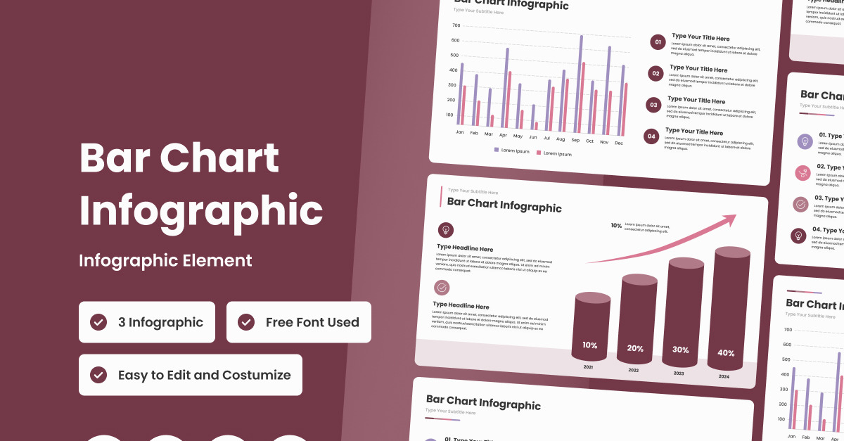 使用条形图信息图表模板深入了解数据驱动的故事讲述。使用动态条形图有效地吸引注意力并传达见解。从分析报告到趋势分析,该模板使您能够清晰、准确地呈现信息,使复杂的数据易于理解并吸引受众。