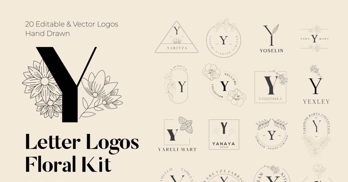 Y 字母花卉手工徽标套件