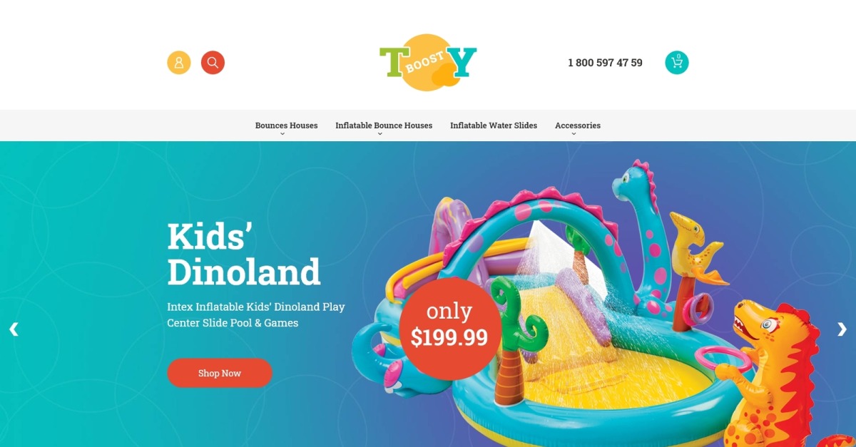 ToyBoost 是一个超级 Magento 2 主题,专为销售充气玩具、吹风机和弹跳屋而设计。其明亮活泼的设计非常适合儿童商店。 ToyBoost 具有完全响应能力,并且在任何现代设备上看起来都很棒。让您的访客直接通过手机购物,并获得与在笔记本电脑上同样出色的用户体验。使用引人注目的产品横幅和大型首页滑块展示您的商品。这些工具非常适合吸引用户的注意力并向他们通报您的折扣和优惠。此外,该模板附带了新闻通讯订阅表格,使您无需寻找第三方软件即可构建订阅列表。使用产品愿望清单和产品比较功能,让您的客户收集他们最喜欢的商品并比较不同的产品。 ToyBoost 是一个可靠的 Magento 2 主题,附带详细的文档、PSD 源文件和 24/7 支持。
