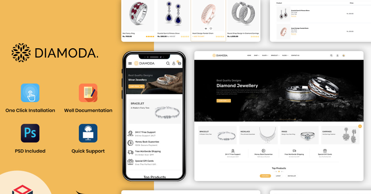 Diamoda 商店一定能满足您创建时尚网站、装饰店的所有愿望。该主题包含许多智能功能和高级功能,助力您的网站业务发展。该模板适用于任何使用最新 OpenCart 3.x 版本的商店。