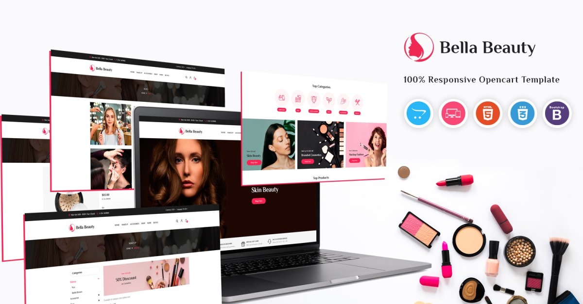 贝拉美容响应式 OpenCart模板专为化妆品、化妆品、配饰、皮肤、美容或任何类型的多功能商店而设计。