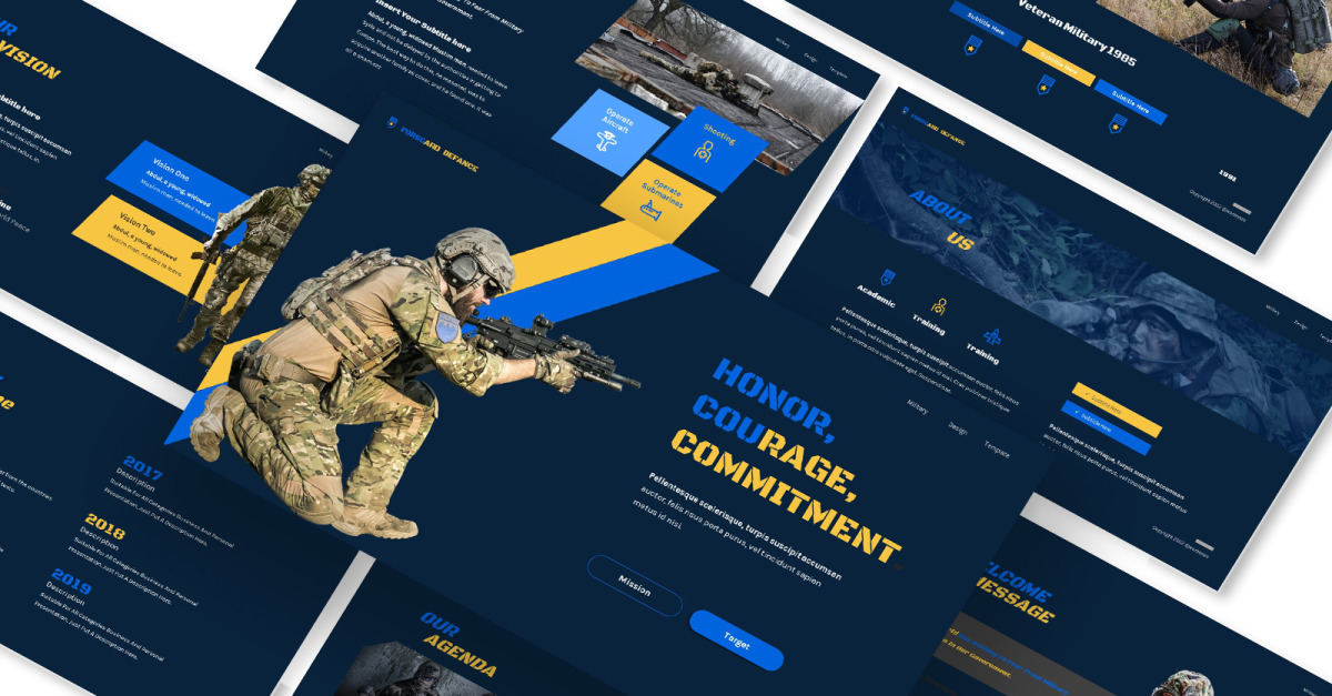 Forsgard Defance 模板是一个多用途 MilitaryPowerpoint 模板,可用于任何类型的演示文稿:商业、投资组合、企业、军事、军队、项目,也可用于定制制作。