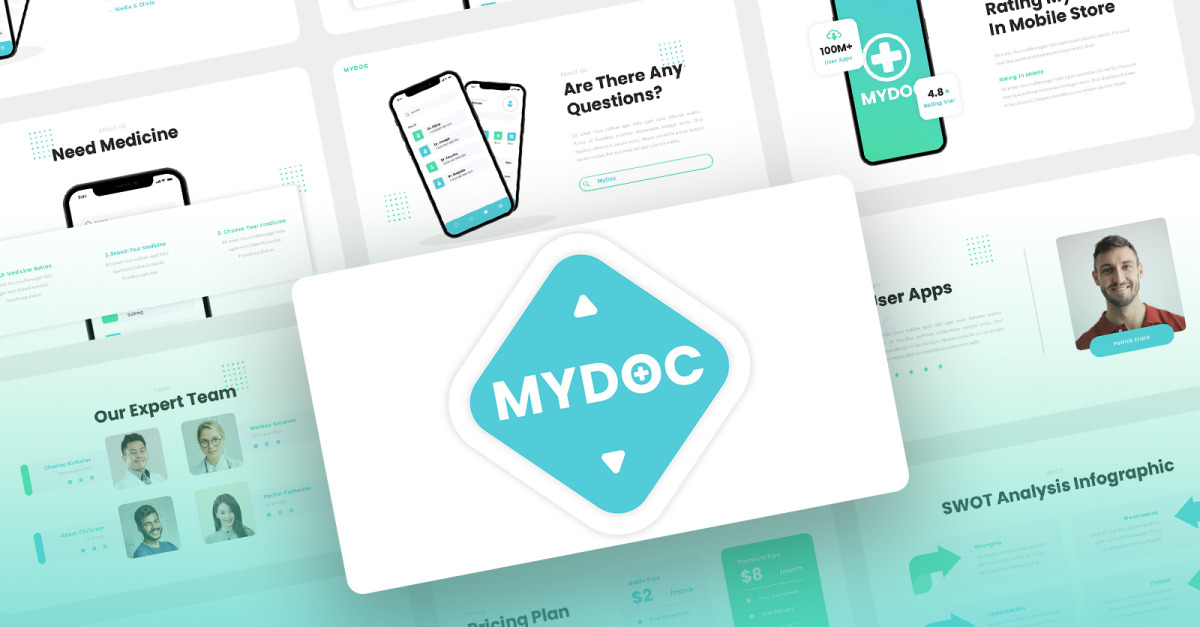 Mydoc - 医疗保健顾问移动应用程序和 SAAS PowerPoint 模板
