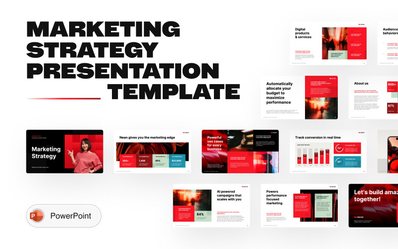 Nean 是一款专业且现代的 PowerPoint 模板,专为营销策略和活动策划演示而设计,包含 20 张明亮、醒目且简洁的幻灯片,采用红色主题布局,并提供浅色和深色两种样式。
