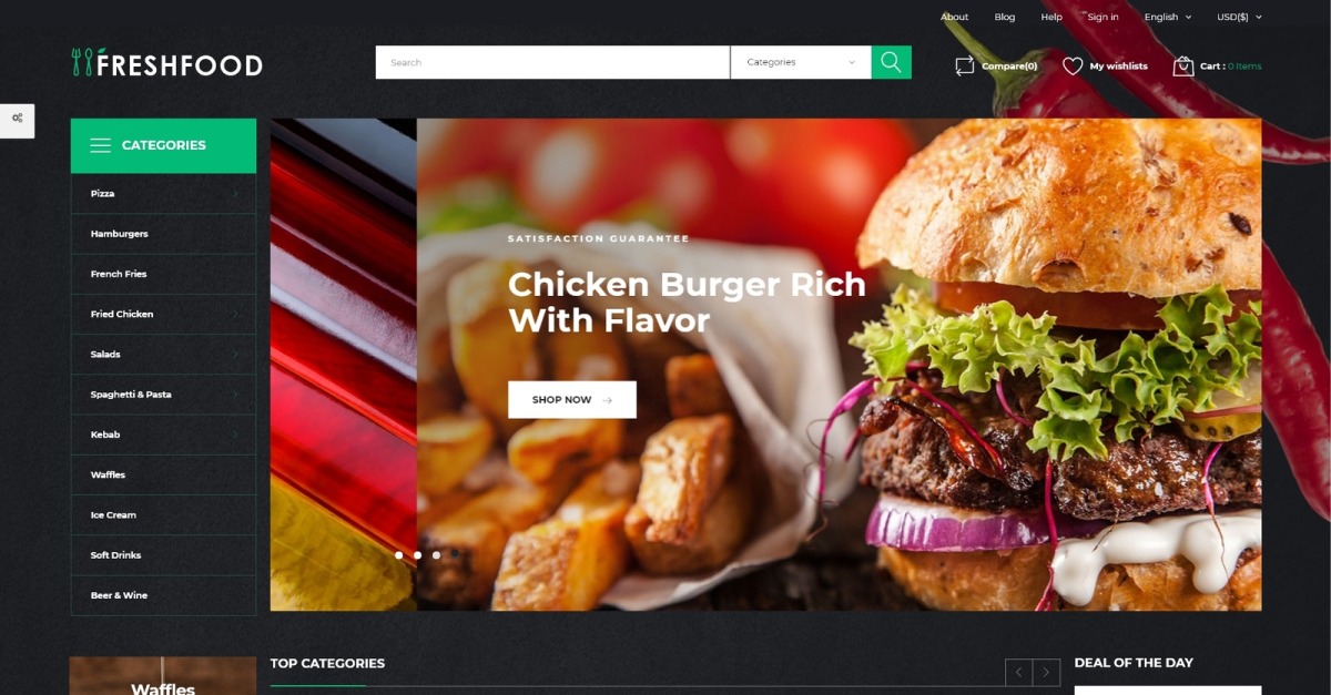 在线购买产品可以让人们节省时间来享受更愉快的事情和爱好。名为 Freshfood 的食品店模板可以成为在线食品配送的出色解决方案。