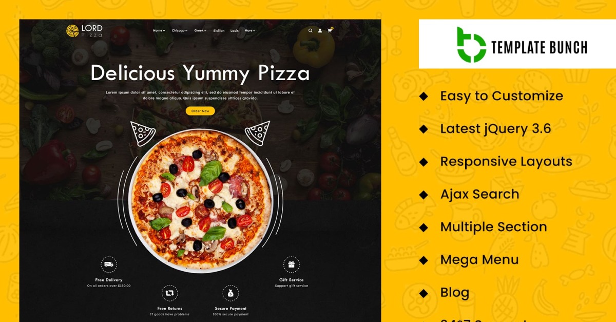 简洁的代码、Google 字体和 Icofont 图标,让您的菜单看起来魅力十足,令人无法抗拒。AJAX 驱动的联系表单增强了沟通体验,多语言和盒式布局支持则扩大了您的覆盖范围。Lord Pizza Store 助您打造令人垂涎的在线形象——定制就像切披萨一样简单。