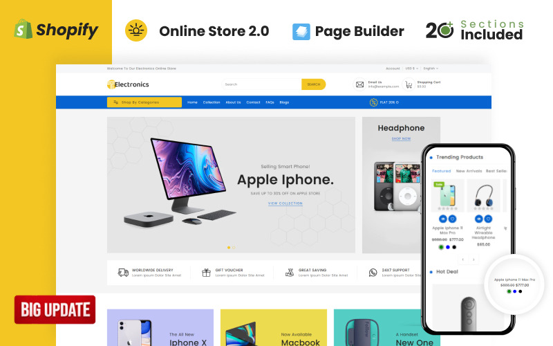 T Electronics Shopify 主题可用于任何类型的商店。该主题需要零编码知识才能使用。它具有强大的用户友好功能,可以吸引更多客户到您的在线商店并促进销售!