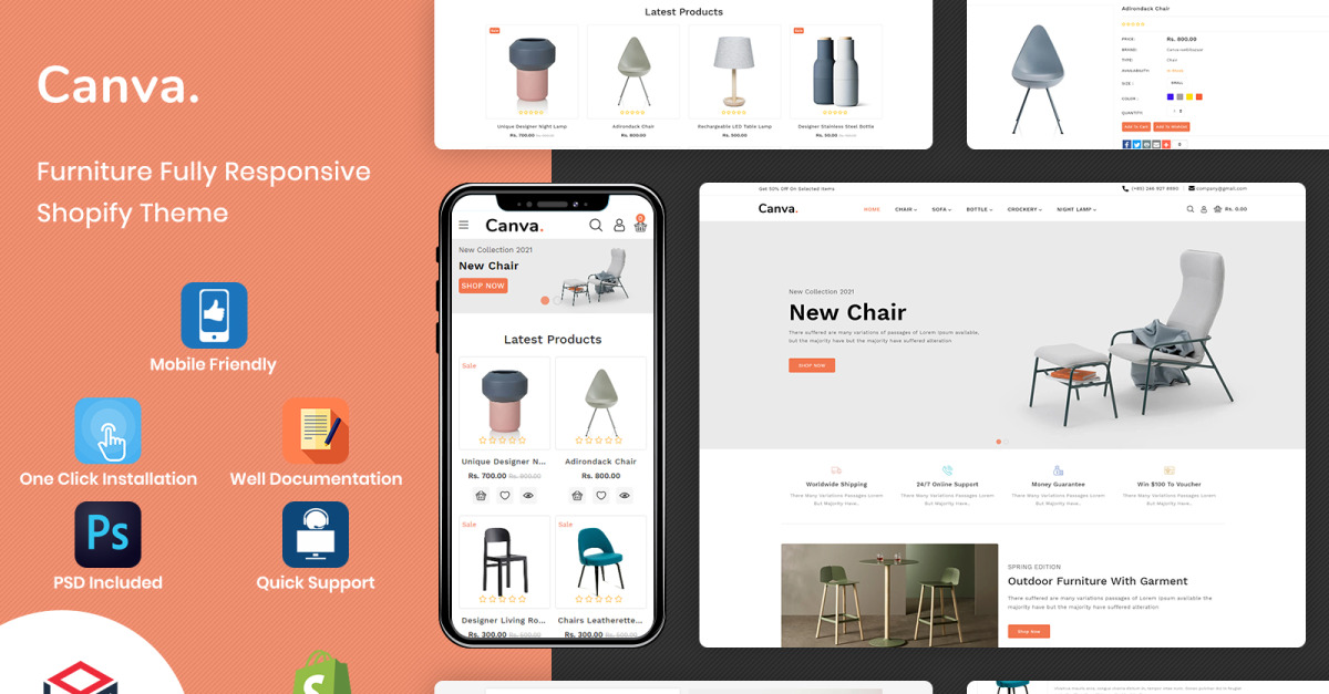 Canva是家具店的专属电子商务主题。无论您销售的是咖啡桌、长凳、餐椅、客厅套装、家具、家具店、现代家具、潮流家具、时尚家具、家具产品、家具设备、木制品、木匠、木匠店、厨房家具、客厅、卧室家具店、办公家具、家用家具、室内、室外、家居装饰、家居装饰产品、沙发、椅子桌子、办公用品、餐厅家具、工作站商店、咖啡桌、衣柜和所有家具解决方案或存储解决方案,Canva Accessories 主题都是您的完美选择。您可以根据需要轻松拖放可用部分。这个 Shopify 主题为您提供了多种 Mega Menu 样式。