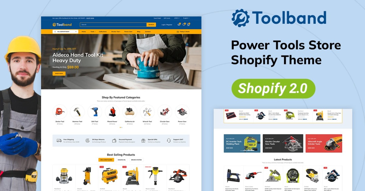 Toolband 多功能工具商店,您购买优质工具、硬件和设备的终极目的地!我们自豪地推出 Shopify 2.0 响应式主题,该主题采用最新的 Shopify 技术精心制作,旨在将您的购物体验提升到新的高度。