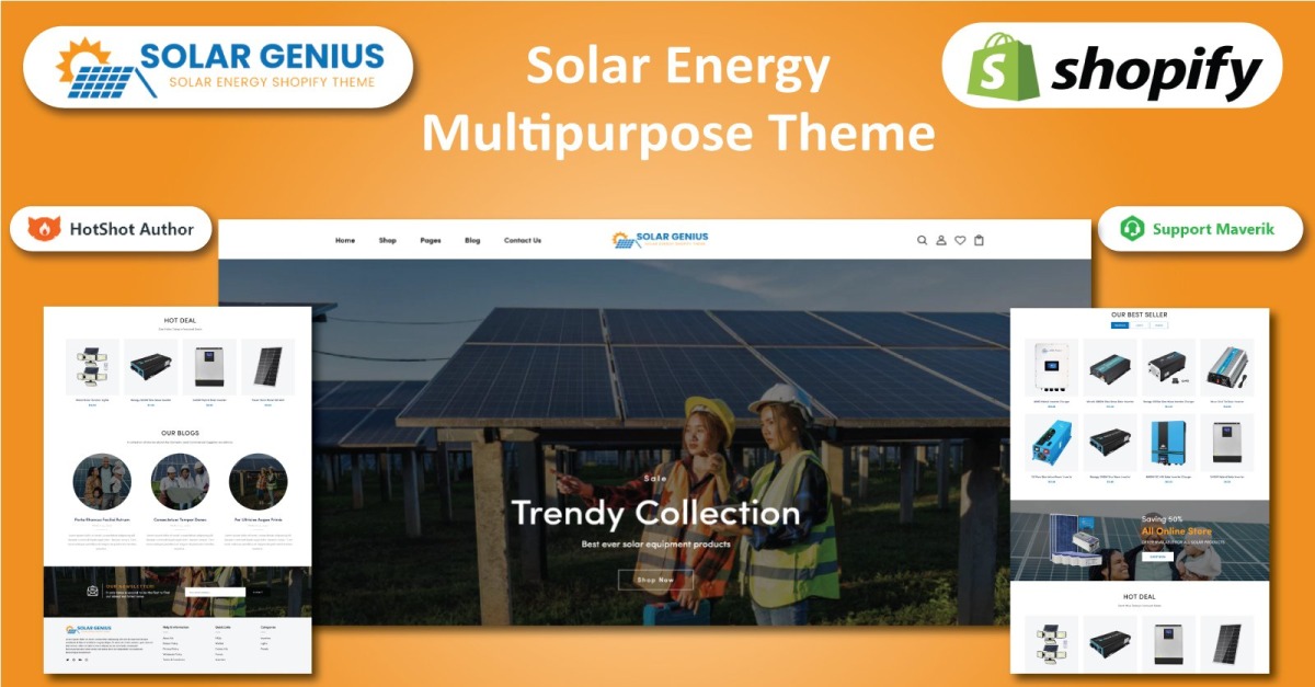 Solar Genius - 太阳能 Shopify 主题是专为太阳能和风能企业以及可再生能源公司设计的专业且现代的主题。