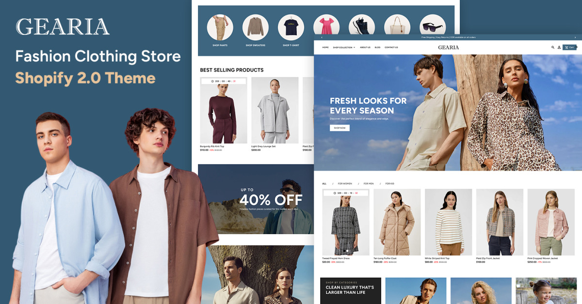 无论您销售的是时尚服饰、街头服饰还是奢侈时尚,Gearia 都能为您的 Shopify 商店提供风格、性能和简洁性的完美平衡 - 帮助您提高销量并打造客户喜爱的时尚品牌。