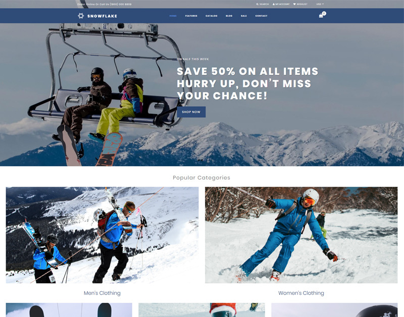 您不能将滑雪配件的定制 Shopify 设计作为模板转售,但您可以将其作为项目出售给您的客户。