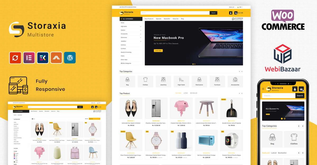 Storaxia - 电子商务 WooCommerce 是最好的时尚多功能 Woocommerce 主题。您将获得独家功能,例如 Revolution Slider、elementor Page Builder、Mailchimp 和客户评论。该主题集成了 Google Web Fonts,为您在自定义主题时提供多种字体可供选择。在任何设备桌面、平板电脑或手机上都有令人惊叹的外观。