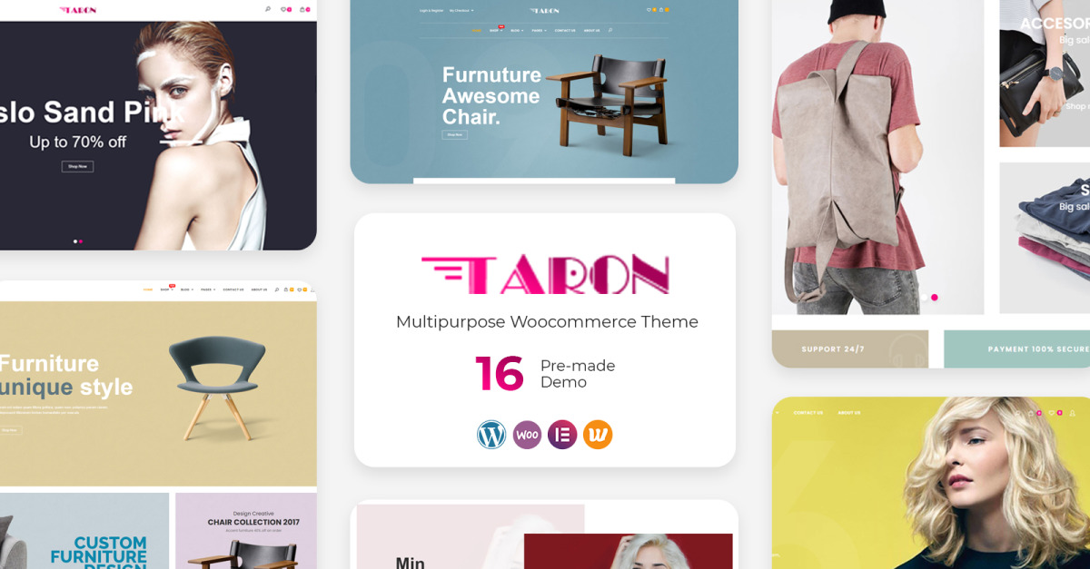 Taron 主题是一款多功能 WooCommerce WordPress 主题,专为时尚、家具、电子产品、配饰、美容店和各种市场业务而设计。此主题完全响应,在各种屏幕和设备上看起来都很棒。