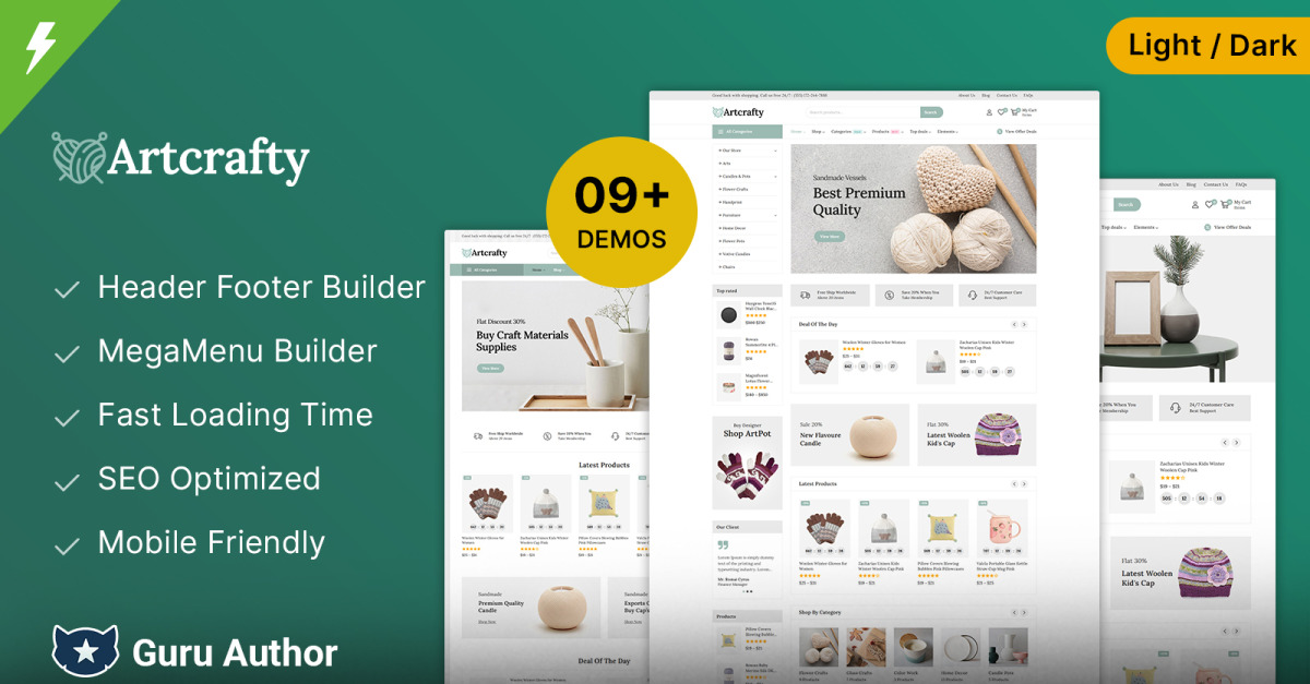 Artcrafty 是一款设计精美的 WooCommerce 主题,专为艺术画廊、手工制品、家居装饰和照片画廊量身定制。无论您展示的是精美的艺术品、手工工艺品还是独特的装饰品,Artcrafty 都能将优雅的设计与强大的电商功能相结合,帮助您打造一个引人入胜、引人入胜的在线商店。