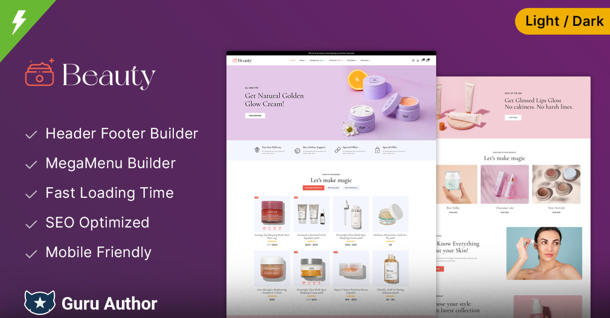 Beauty 拥有高度响应式布局,并支持 SEO ,确保在所有设备上均能提供一流的性能。无论顾客使用台式电脑还是智能手机浏览,您的商店都能快速加载,并呈现完美无瑕的视觉效果。
