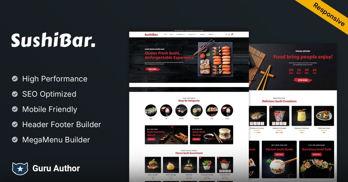 介绍 SushiBar - 寿司吧餐厅 WooCommerce Elementor 主题,这是一款时尚现代的主题,专为寿司吧、日本餐厅和小餐馆打造。此主题旨在展示您的美味菜单,增强您品牌的在线形象,并将访客转化为忠实客户。凭借其令人惊叹的设计、快速的性能和无缝的 WooCommerce 集成,SushiBar 让管理在线餐厅业务变得轻松无比。