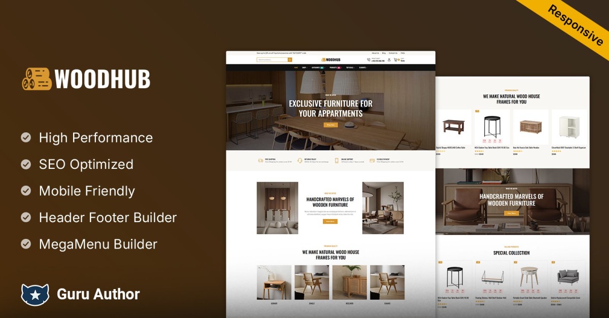 WoodHub 拥有完全响应式的布局,确保您的商店在所有设备上(从台式机到智能手机)都看起来完美无瑕。其简洁直观的设计让用户可以轻松导航,从而提升整体购物体验。