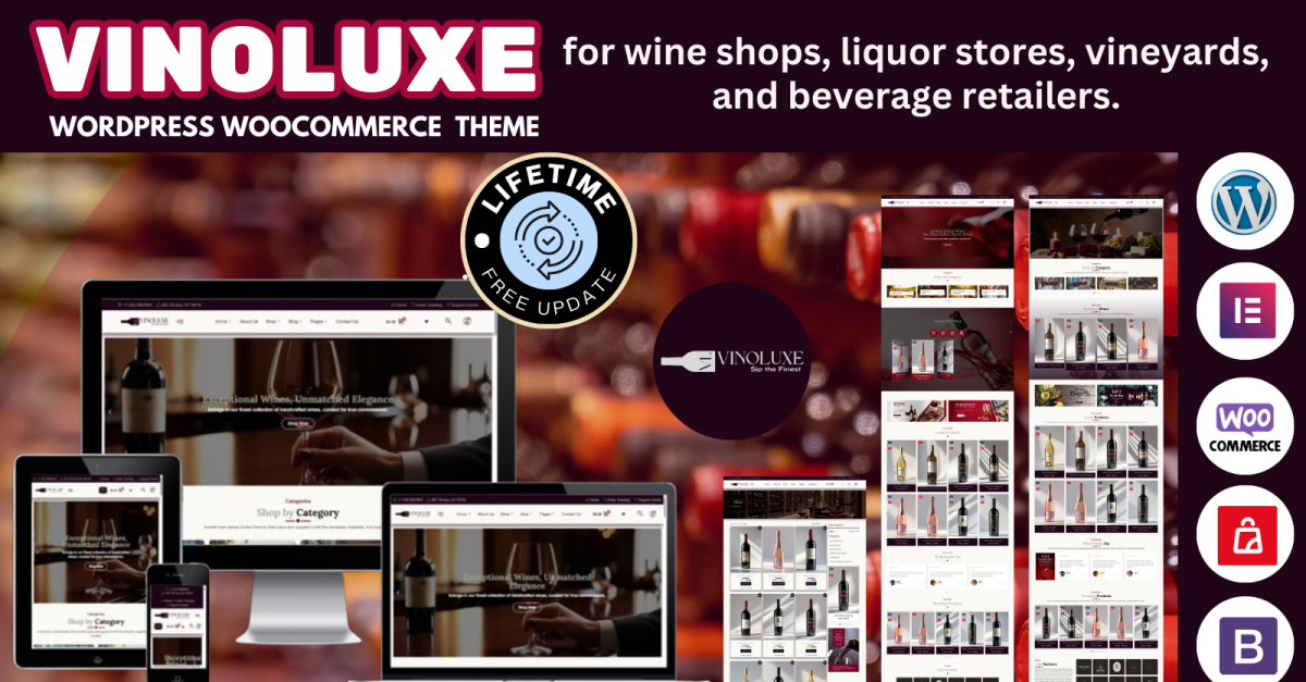 VinoLuxe 是一款高级 WordPress WooCommerce Elementor 主题,专为葡萄酒商店、酒类商店、葡萄园、啤酒厂和饮料零售商设计。无论您销售优质葡萄酒、精酿啤酒、陈年威士忌还是手工烈酒,VinoLuxe 都能提供豪华且视觉效果极佳的在线商店,以时尚的方式展示您的产品。凭借用户友好的界面、无缝的WooCommerce集成和强大的自定义选项,VinoLuxe 可确保为客户提供顺畅的购物体验,同时提升您品牌的在线形象。