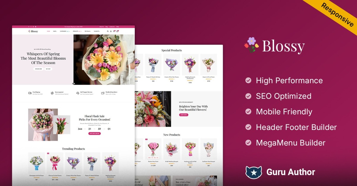 Blossy是花店、婚礼用品店和礼品店的理想 WooCommerce 主题,助您打造专业、惊艳且功能齐全的线上形象。轻松时尚地开始销售您的产品——Blossy提供您打造引人入胜、高转化率电商商店所需的一切。