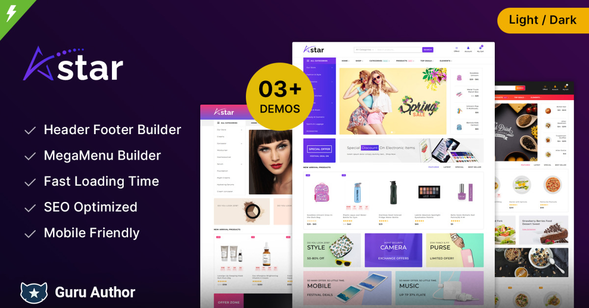 AStar是一款时尚、现代且高度可定制的WooCommerce 主题,专为时尚商店、服装品牌、精品店和多功能在线商店而设计。无论您销售的是服装、配饰还是生活方式产品, AStar都能提供视觉上令人惊艳且用户友好的购物体验。