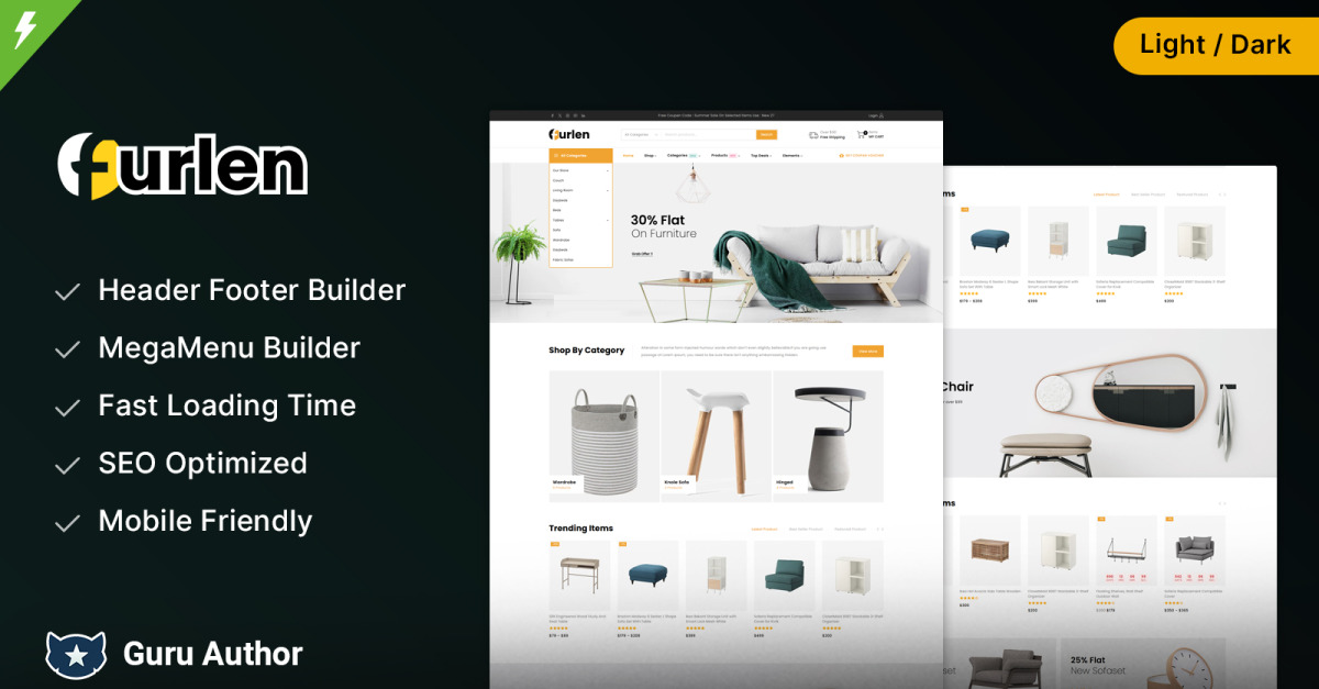 Furlen是一款由TemplateMela精心打造的精美 WooCommerce 主题,让您的家居装饰和家具业务焕然一新。Furlen 专为外观设计模板、家居装饰模板和家具模板量身定制,是打造优雅、注重转化率的在线商店的完美解决方案。无论您专注于室内装饰、户外家具,还是完整的家居改造,Furlen 都能为您的商店提供蓬勃发展所需的风格和灵活性。