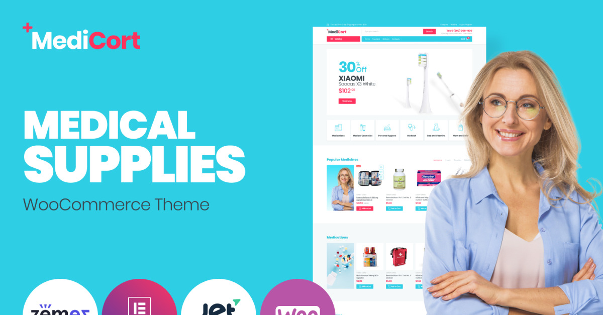 MediCort 是创建专业医疗在线商店的好主意。该主题配备了以最佳方式展示您的医疗店所需的所有功能!它具有经典、简约的设计、明亮的元素和直观的界面。您将能够通过 MediCort 主题按类别显示商品并轻松宣布特别优惠、折扣。此外,借助适用于 Elementor 页面构建器的强大 Jet 插件包,您可以根据需要自定义您的网站。使用 JetWooBuilder 插件,您将在商店页面上显示产品及其分类法,而无需任何特殊的编码知识。 JetProductsGallery 插件将允许在时尚的画廊中展示产品的图像。使用 JetPopup 插件,您将通过引人注目的弹出窗口以及重要且有趣的信息来丰富您的网站。您将使用 JetSmartFilters 插件将 Ajax 过滤器添加到页面。您将使用 JetCompareWishlist 插件向您的在线商店添加比较和愿望清单功能。 JetElements 插件将非常有用,它可以使用不同的元素构建页面内容并设置它们的样式。通过这个响应灵敏的现代 MediCort 主题,您将吸引更多访问者访问您的网站。